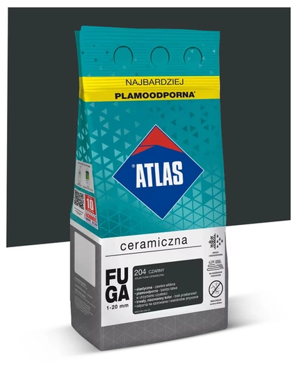 Fuga ceramiczna Atlas 204 czarny przeznaczona jest do spoinowania płytek ceramicznych, gresowych, kamiennych oraz mozaiki zarówno wewnątrz, jak i na zewnątrz budynków. Doskonale sprawdza się w łazienkach, kuchniach, na podłogach, ścianach, balkonach i tarasach, wszędzie tam, gdzie liczy się trwałość, odporność na wilgoć i estetyczny wygląd spoin.
