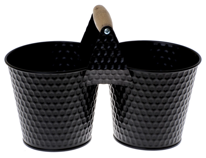 Osłonka metalowa podwójna czarna z rączką 13x27cm to subtelna dekoracja, która zachwyca prostotą i elegancją. Czarna, matowa powierzchnia w połączeniu z drewnianą rączką tworzy wyjątkowy duet, który przyciąga wzrok i dodaje wnętrzu wyrafinowanego charakteru. Ten stylowy dodatek sprawdzi się zarówno w nowoczesnych, jak i klasycznych aranżacjach, podkreślając piękno roślin i wprowadzając przytulny nastrój do każdego zakątka domu.