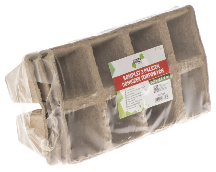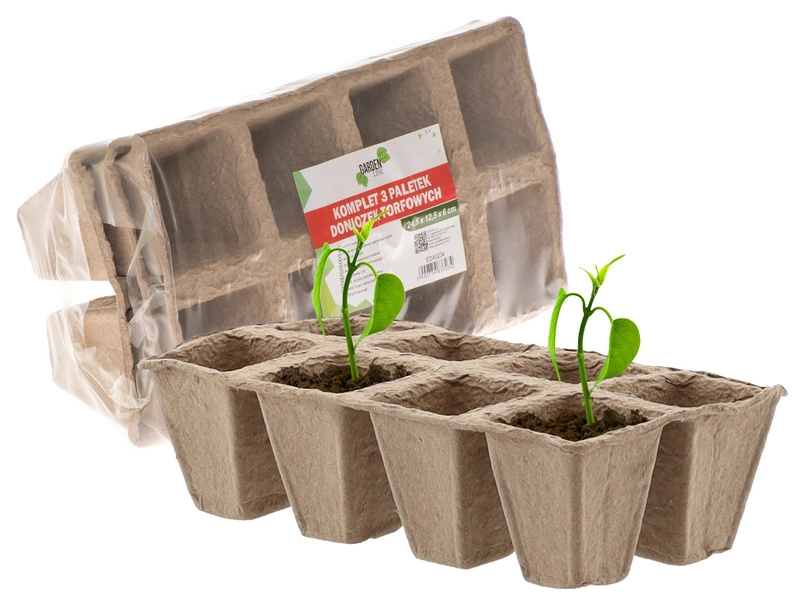 Doniczki torfowe, które ulegają rozkładowi. To sprawia, że mogą zostać umieszczone w ziemi wraz z rośliną, co w dużym stopniu ułatwia uprawę. Doniczki przygotowane z mieszanki torfu, pulpy drzewnej i wapna.