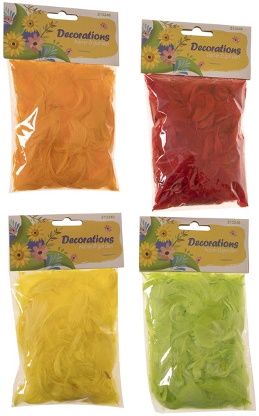 Piękne pióra w wyrazistym, intensywnym kolorze, które są doskonałym elementem dekoracyjnym. Sprawdzą się doskonale przy ozdobach związanych ze świętem Wielkanocy, ale również przy całym szeregu innych okazji.