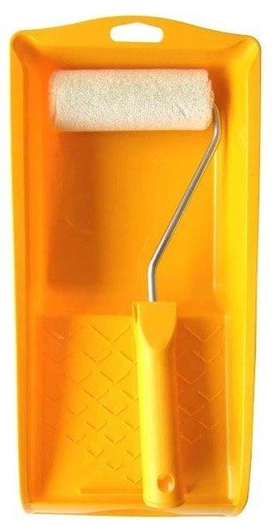 Podstawowy zestaw do malowania, który pozwala na przeprowadzenie prac malarskich. Zawiera welurowy wałek o długości 10 cm wraz z rączką i kuwetą. Zestaw przygotowano w kolorze żółtym.Zestaw: welurowy wałek (5 cm), rączka, kuweta