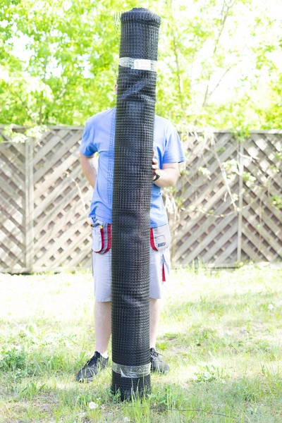 Ochronna siatka przeciw kretom i innym gryzoniom w kolorze czarnym.