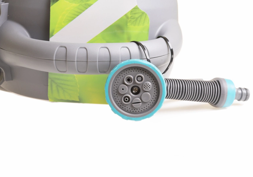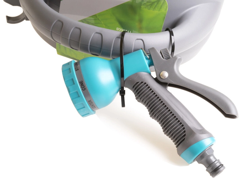 - 7-funkcyjny pistolet zraszający – precyzyjne dopasowanie strumienia do różnych potrzeb ogrodu.