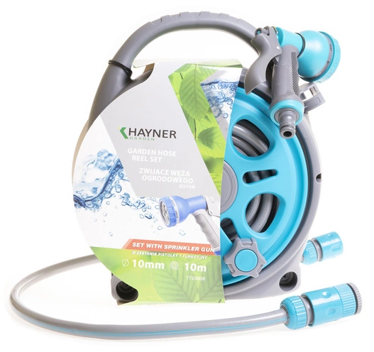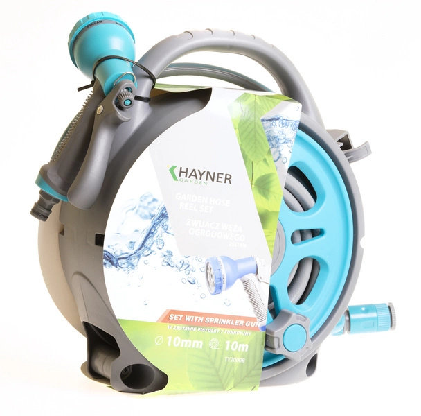 Zwijacz na wąż z 7-funkcyjnym zraszaczem KHayner to praktyczny i lekki zestaw ogrodowy, który sprawdzi się zarówno w małych, jak i większych ogrodach. W skład kompletu wchodzi zwijacz na wąż, wytrzymały wąż o długości 10 m, komplet szybkozłączy oraz pistolet zraszający oferujący aż 7 trybów pracy. Całość tworzy funkcjonalny system, który ułatwia podlewanie roślin, mycie tarasów czy napełnianie zbiorników wodnych. Dzięki temu narzędziu podlewanie staje się wygodne, szybkie i oszczędza czas, a lekka konstrukcja zapewnia komfort użytkowania na co dzień.