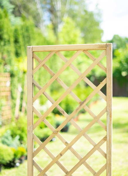 Drewniana kratka do pnączy świetnie sprawdzi się jako podpora dla bluszczu, winorośli, powojników czy róż pnących. Doskonała do tworzenia zielonych ścian, ekranów i osłon w ogrodzie, na tarasie lub balkonie. Może być także wykorzystana do wydzielania stref w przestrzeni zewnętrznej lub jako element dekoracyjny przy altanach i pergolach.