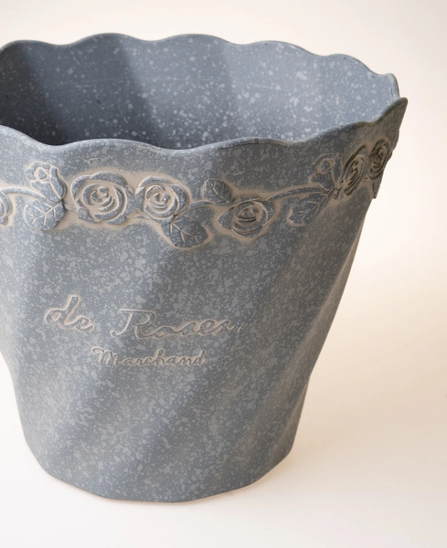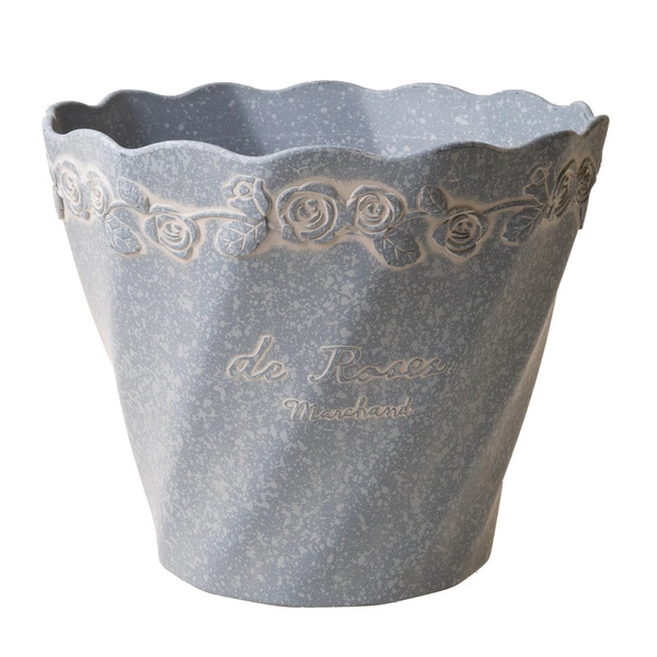 Osłonka vintage w kolorze niebieskim z motywem różanym o wysokości 24 cm odpowiednia do wnętrz, jak i na zewnątrz - odporna na warunki atmosferyczne.