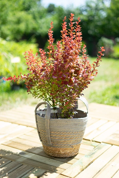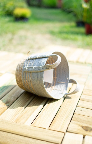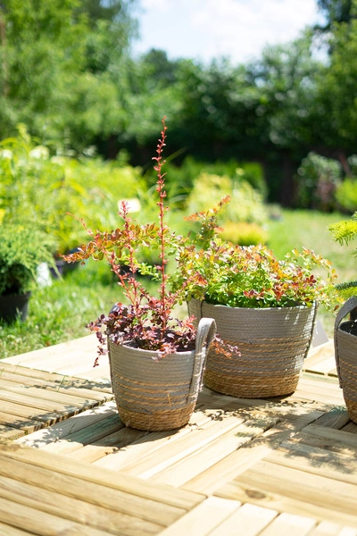 Okrągły kosz z uszami w stylu boho/etno z serii Bali marki Mondex wykonany z trawy morskiej. Pomysł na piękny kwietnik albo sposób na przechowywanie domowych drobiazgów.