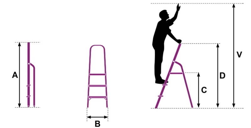 Wysokość złożonej drabiny A:1480 mm