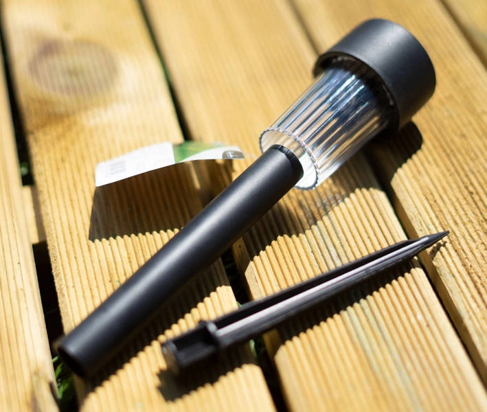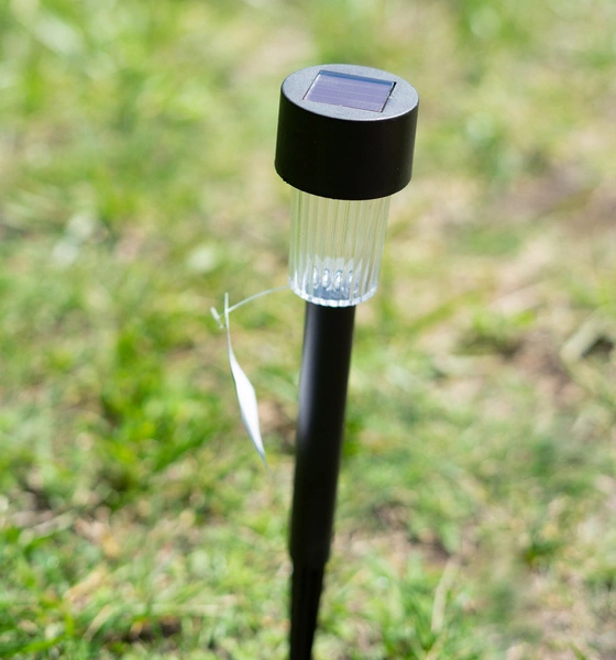 Klasyczna lampa solarna, przygotowana w postaci czarnych słupków. Lampka posiada włącznik "on/off" i jest odporna na działanie deszczu (przy czym należy pamiętać, by po otwarciu bardzo szczelnie ją zamknąć). Zapewnia piękne, białe światło o zimnym zabarwieniu.