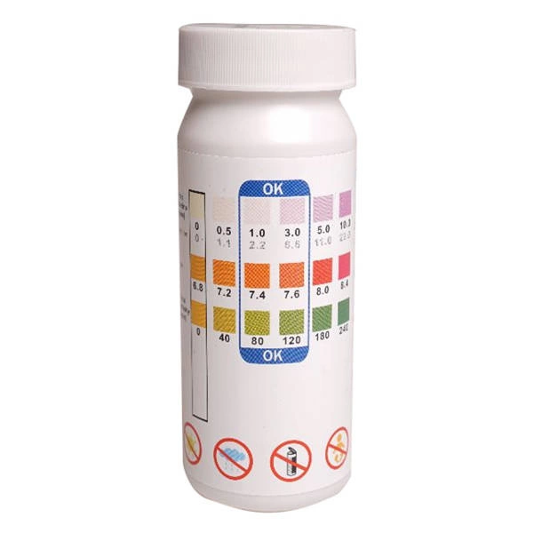 Paski zostały przygotowane w taki sposób, żeby podawać poziom chloru wolnego, pH oraz zasadowości całkowitej.