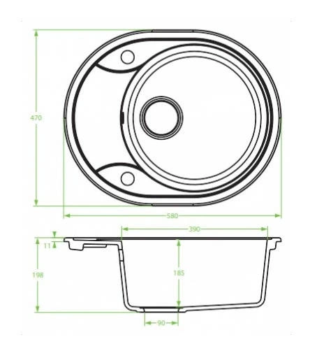 - Zlewozmywak 1-komorowy Dafne 58x47cm