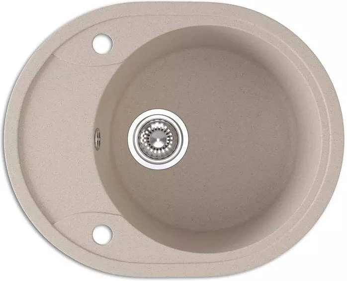 Jednokomorowy zlewozmywak z ociekaczem, przygotowany w eleganckim, beżowym kolorze. Atrakcyjny, okrągły kształt odznacza się dodatkowym walorem dekoracyjnym.