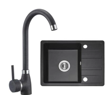 Zlew 1 kom 44x58cm z syfonem i baterią czarny