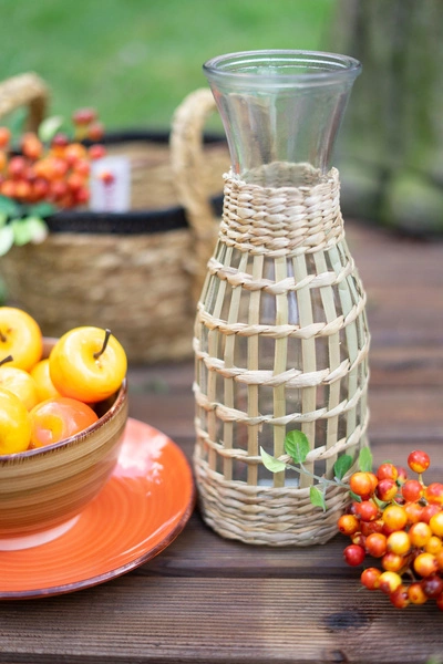Karafka szklana BOHO 1L to połączenie funkcjonalności i wyjątkowego designu. Wykonana z wysokiej jakości szkła, wyposażona w efektowną słomianą osłonkę, doskonale sprawdzi się podczas codziennego użytkowania oraz na przyjęciach. Idealna do serwowania wody, soków, lemoniad czy innych ulubionych napojów. Przezroczyste szkło pozwala wyeksponować zawartość, a naturalna osłonka nadaje produktowi modny, boho charakter. Ergonomiczny kształt oraz pojemność jednego litra czynią karafkę praktycznym dodatkiem do każdej kuchni lub jadalni.