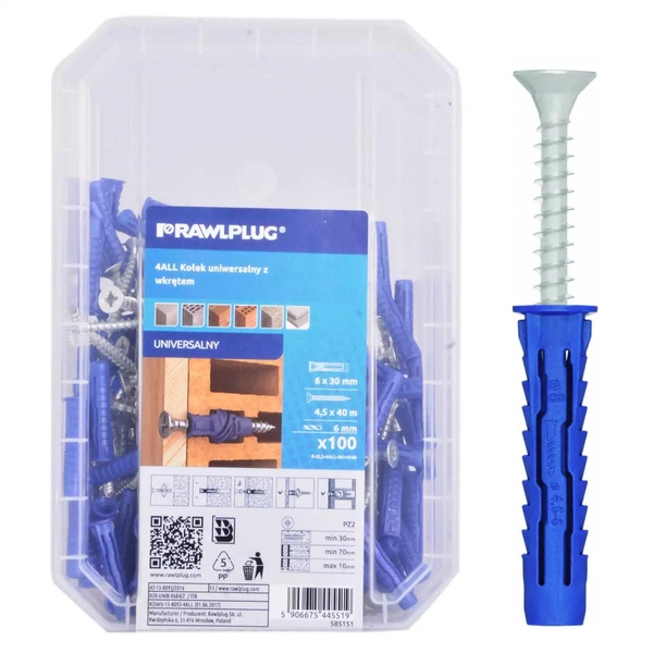 - Kołek uniwersalny 4ALL 6x30mm z wkrętem 100szt