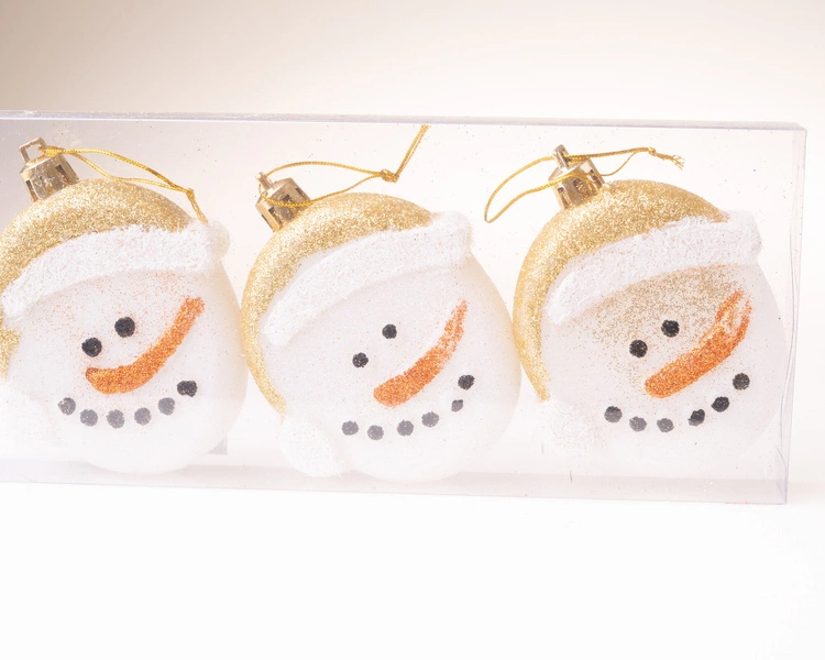 Bombki głowa bałwana złota czapka 7 cm 3 sztuki
