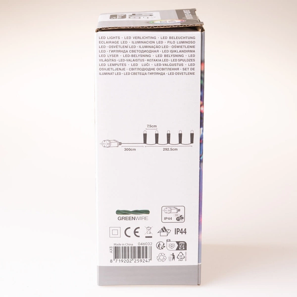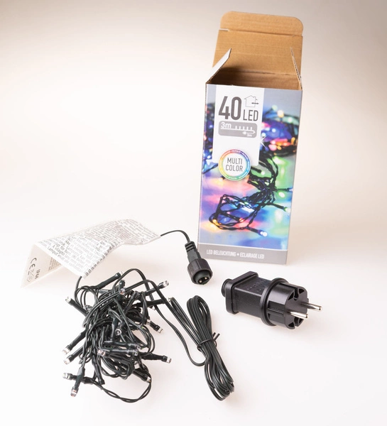 Oświetlenie świąteczne do stosowania zarówno na zewnątrz jak i wewnątrz, składające się z 40 ledowych lampek umieszczonych na ciemnozielonym przewodzie. Lampki świecą wielokolorowym światłem. Stanowią bardzo atrakcyjną dekorację, która nada magii w czasie świąt Bożego Narodzenia.
