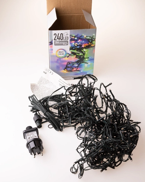 Oświetlenie świąteczne do stosowania zarówno na zewnątrz jak i wewnątrz, składające się z 240 ledowych lampek umieszczonych na ciemnozielonym przewodzie. Lampki świecą wielokolorowym światłem. Stanowią bardzo atrakcyjną dekorację, która nada magii w czasie świąt Bożego Narodzenia.