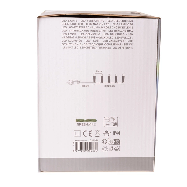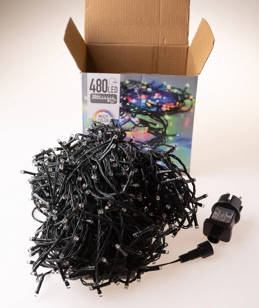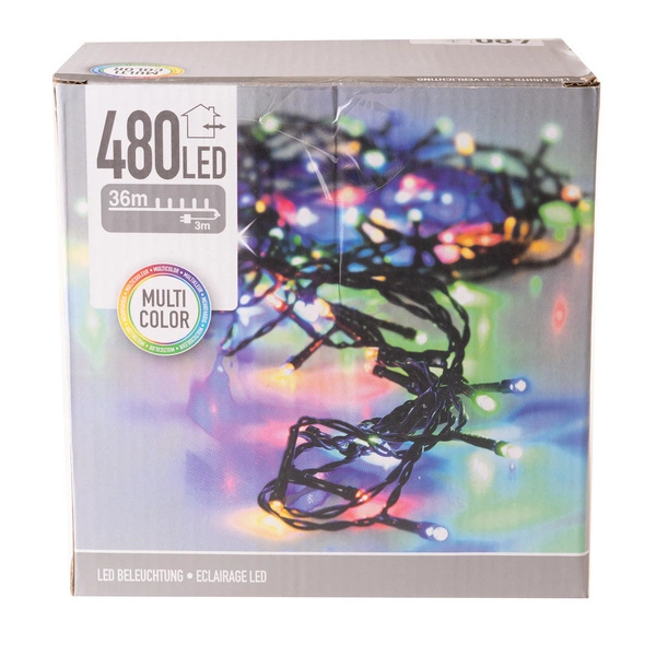 Oświetlenie świąteczne do stosowania zarówno na zewnątrz jak i wewnątrz, składające się z 480 ledowych lampek umieszczonych na ciemnozielonym przewodzie. Lampki świecą wielokolorowym światłem. Stanowią bardzo atrakcyjną dekorację, która nada magii w czasie świąt Bożego Narodzenia.
