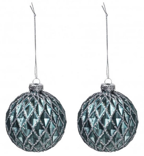Bombki turkusowe szklane srebrne romby 2sztuki