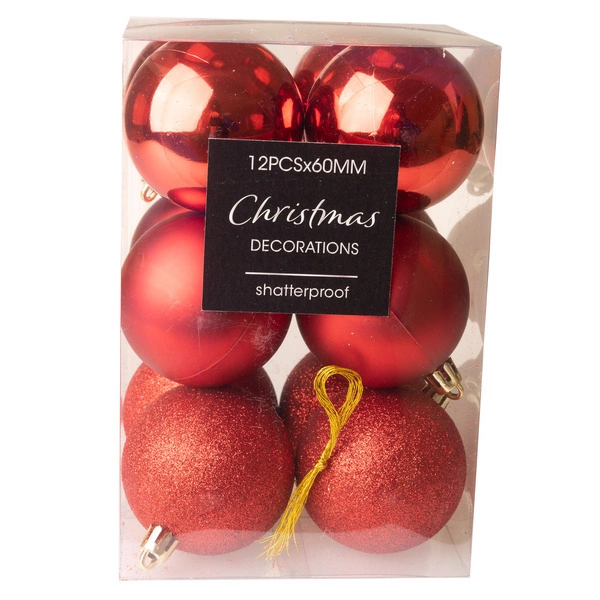 Bombki czerwone mat/ połysk/ brokat 12sztuk 6cm