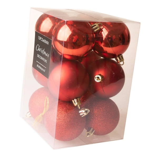 - Bombki czerwone mat/ połysk/ brokat 12sztuk 6cm