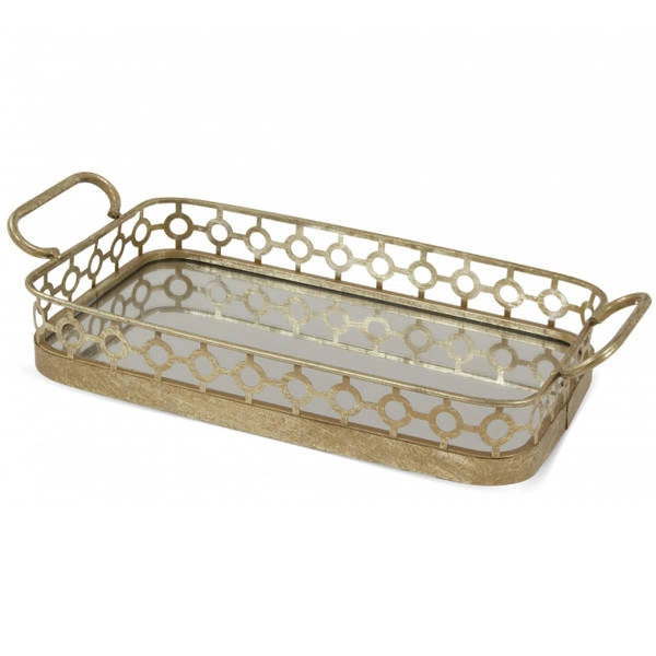 - Taca metalowa złota patyna z lustrem i rączkami 9,5x46x22,5cm