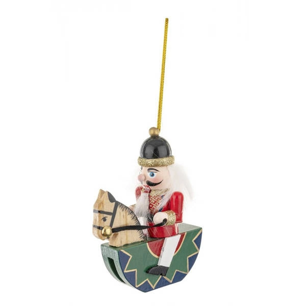 Bardzo klasyczna dekoracja świąteczna, przedstawiająca dziadka do orzechów. To ozdoba rozsławiona przez słynną powieść dla dzieci, która na trwałe wpisała swoją obecność w czas Bożego Narodzenia. Przygotowana została w bardzo atrakcyjnych kolorach i wzorze przedstawiającym go na koniu. Jest charakterystyczną dekoracją świąteczną, która roztacza swój urok po całym wnętrzu.