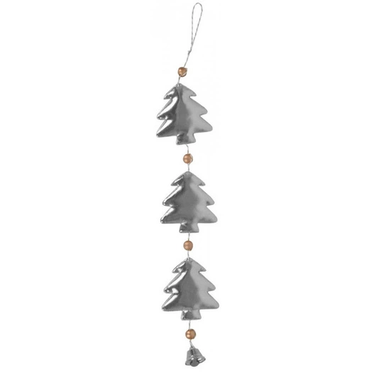 Sznur z choinkami srebrnymi i dzwonkiem 50cm