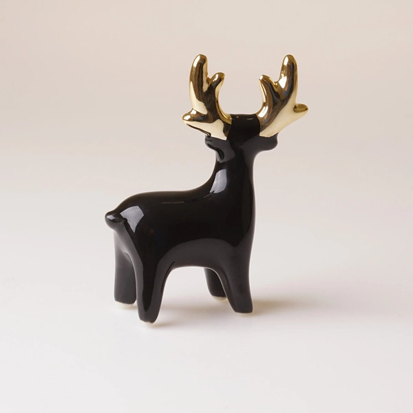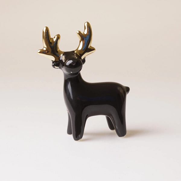 - Czarny mini reniferek ze złotymi rogami - figurka ceramiczna