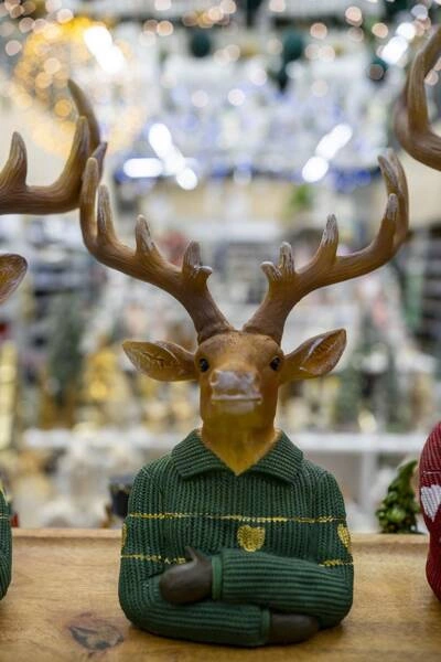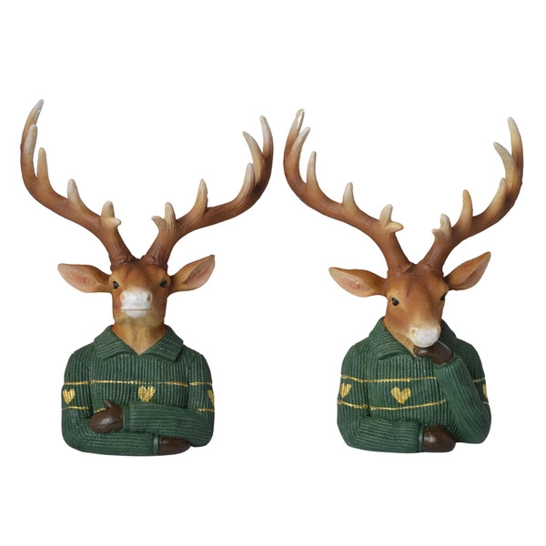 Figurka przedstawiająca popiersie renifera wykonane z ceramiki. Renifer przygotowany został w zielonym swetrze. Jest to atrakcyjna forma udekorowania wnętrza, która sprawdza się w każdym momencie, a dodatkowego charakteru nabiera w okresie świąt Bożego Narodzenia.