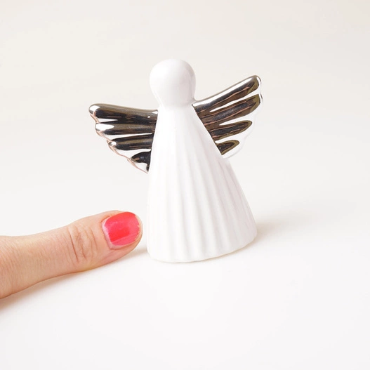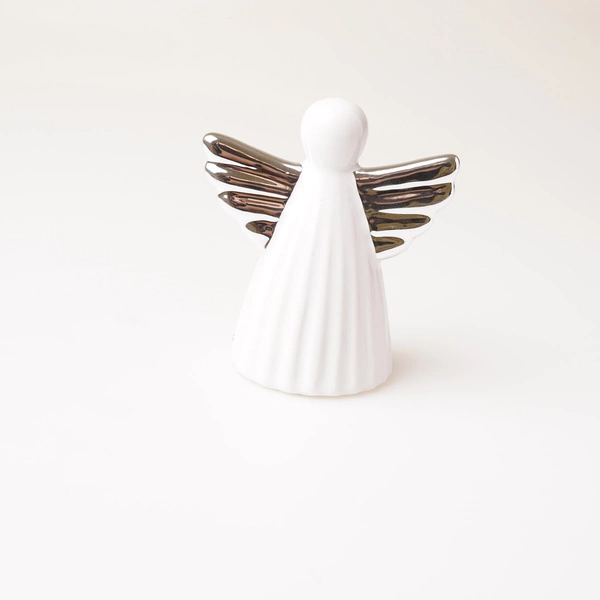 - Figurka ceramiczna aniołek ze srebrnymi skrzydłami