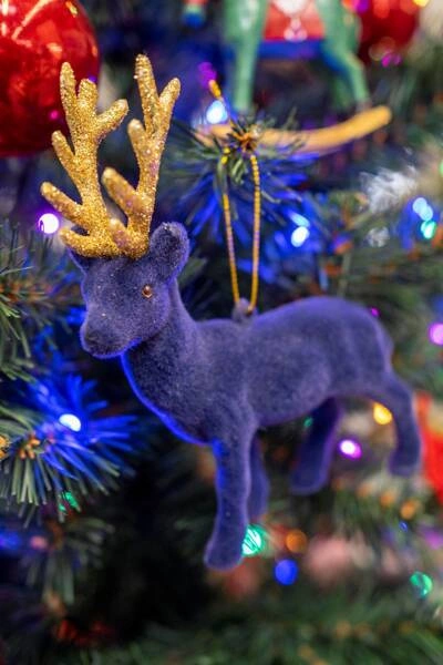 Piękna i bardzo estetyczna zawieszka przygotowana w formie granatowego, welurowego renifera. Jest to dekoracja, która może wypełnić dowolną przestrzeń domu, również jako jedna z ozdób choinkowych.