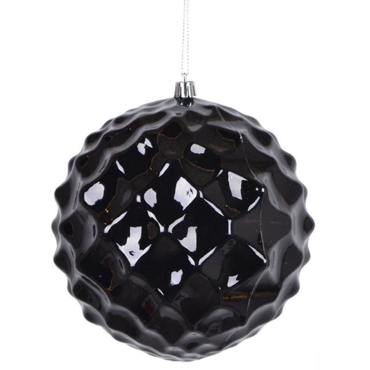 Bombka choinkowa stworzona na bazie klasycznej dekoracji, ale ze ściankami w geometrycznym kształcie. Wykonana w kolorze czarnym, nadaje otoczeniu elegancji i stylu. Jest to wspaniała i bardzo oryginalna ozdoba w okresie świąt Bożego Narodzenia, przygotowana w dużym, piętnastocentymetrowym wydaniu.