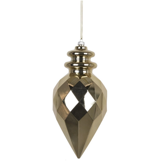 Bombka choinkowa stworzona na bazie klasycznej dekoracji, ale ze ściankami w geometrycznym kształcie. Wykonana w kolorze szampańskim, nadaje otoczeniu elegancji i stylu. Jest to wspaniała i bardzo oryginalna ozdoba w okresie świąt Bożego Narodzenia, przygotowana w dużym wydaniu.