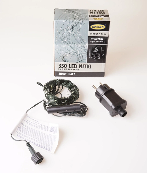 Lampki wewnętrzne z zasilaczem 350 LED nitki biały zimny