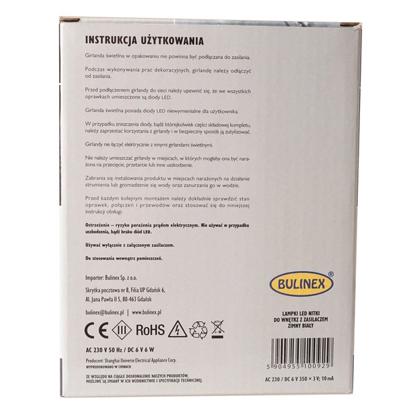 Oświetlenie świąteczne do stosowania wewnątrz pomieszczeń wykonane z 350 drobnych diodek LED, osadzonych na 14 dyskretnych zielonych przewodach. Lampki świecą zimnym, białym światłem. Stanowią bardzo atrakcyjną dekorację, która nadaje ogromnej magii w czasie świąt Bożego Narodzenia.