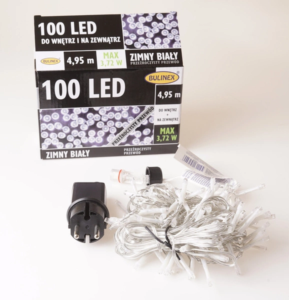 Zewnętrzne i wewn lampki 100 Led 4,95m biały zimny