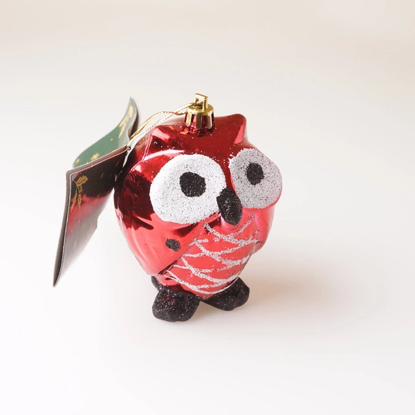 Bombka choinkowa przedstawiająca sowę. Stanowi atrakcyjną formę dekoracji bożonarodzeniowego drzewka, podkreślającą klimat i nastrój świąt.