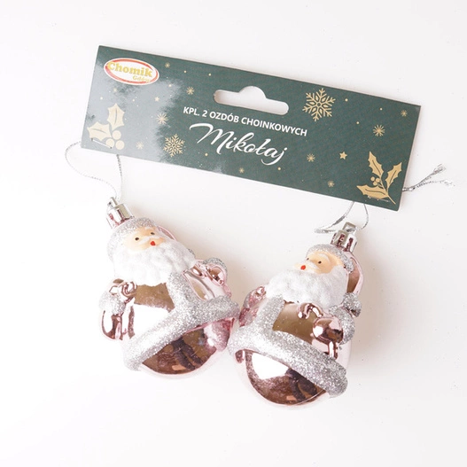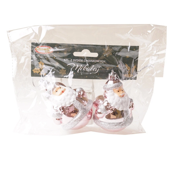 2 bombki choinkowe przestawiające Mikołaje. Stanowią atrakcyjną formę dekoracji bożonarodzeniowego drzewka, podkreślającą klimat i nastrój świąt.