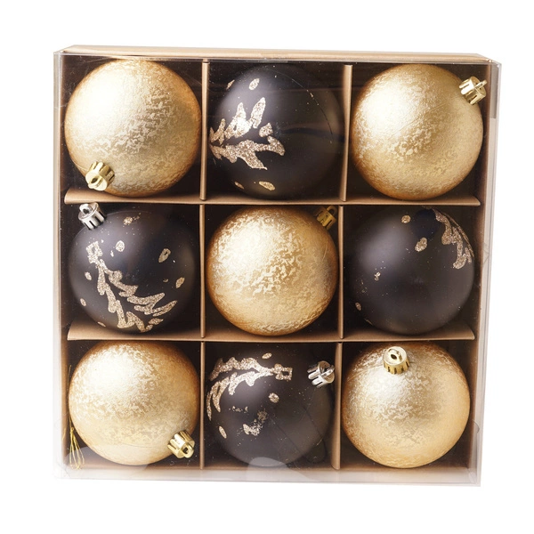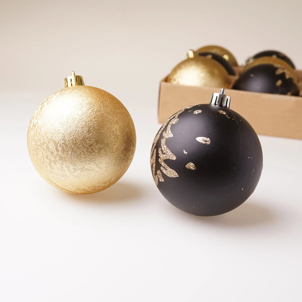 Bombka 9szt 8cm złota/czarna brokatowa choinka