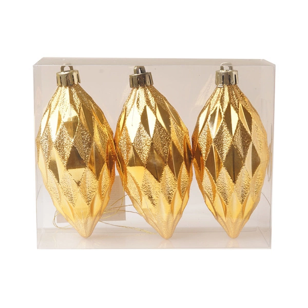 Bombka 3szt 10cm podłużna, romby złota