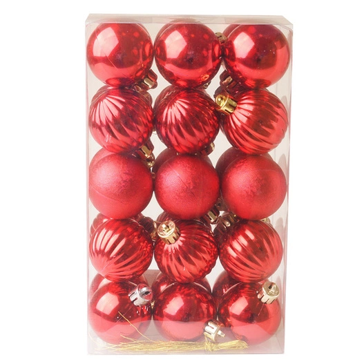 Zestaw 30 bombek choinkowych. Stanowią atrakcyjną formę dekoracji bożonarodzeniowego drzewka, podkreślającą klimat i nastrój świąt.