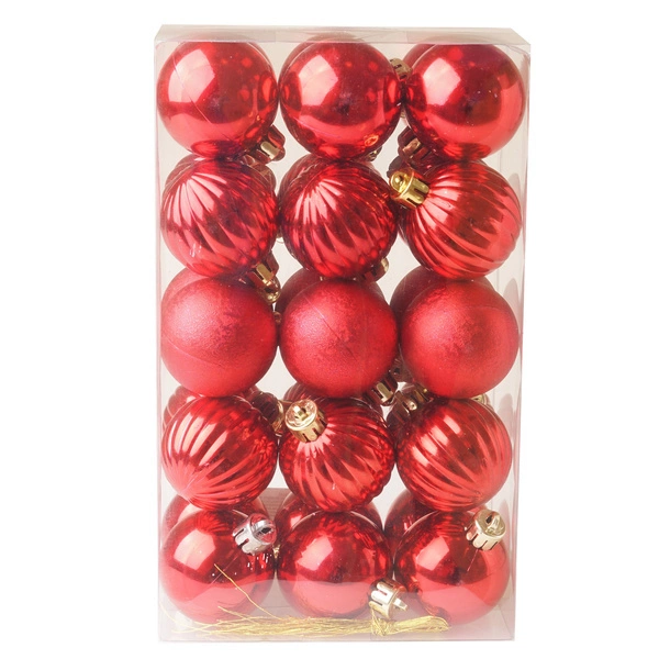 - Bombki 30szt w prążki/ mat/ połysk czerwone