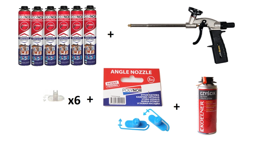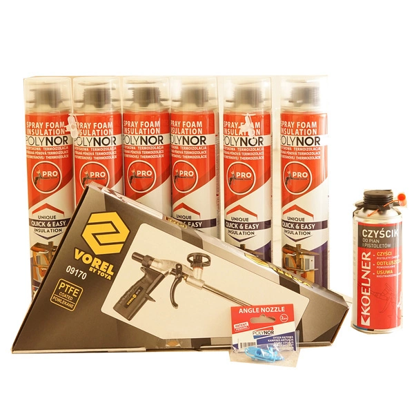 Piana PUR POLYNOR Pro 750ml ZESTAW 6szt+ pistolet Vorel 09170 do pianki montażowej +czyścik Koelner+dysza kątowa 1 kpl