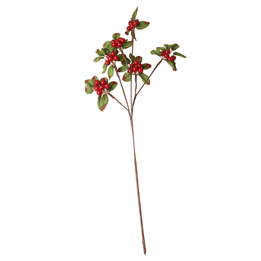 Sztuczna gałązka przygotowana w bardzo wyrazistej, a jednocześnie eleganckiej barwie - połączeniu zieleni i czerwieni. Posiada na swojej powierzchni małe sztuczne owoce jarzębiny i zielone liście. Świetnie komponuje się z okresem zimy i świąt Bożego Narodzenia. Może stanowić samodzielną ozdobę, lub stać się częścią większej kompozycji dekoracyjnej, np. przy stroikach.