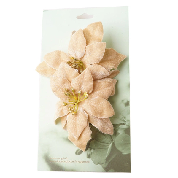Piękna dekoracja przygotowana w formie sztucznego kwiatu - ponsetii. Komponuje się z okresem zimy i świąt Bożego Narodzenia. Może być eksponowana samodzielnie, lub jako część większej kompozycji ozdobnej.