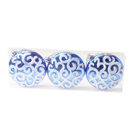 Bombki 3szt niebieskie płaskie biały dekor