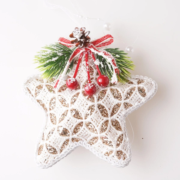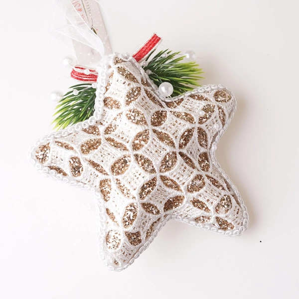 Zawieszka na choinkę przedstawiająca koronkową gwiazdkę. Doskonale komponuje się z okresem zimy i świąt Bożego Narodzenia, wprowadzając do wnętrza magiczny nastrój.