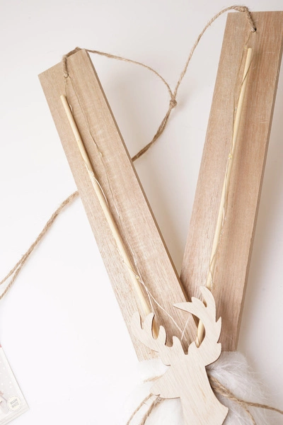 Ozdoba świąteczna przedstawiająca narty z oświetleniem ledowym zasilanym 2 bateriami AAA 1,5V (narty nie zawierają baterii).